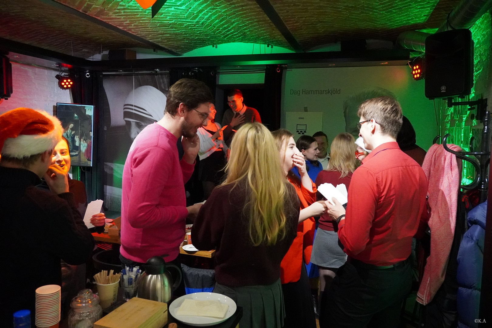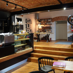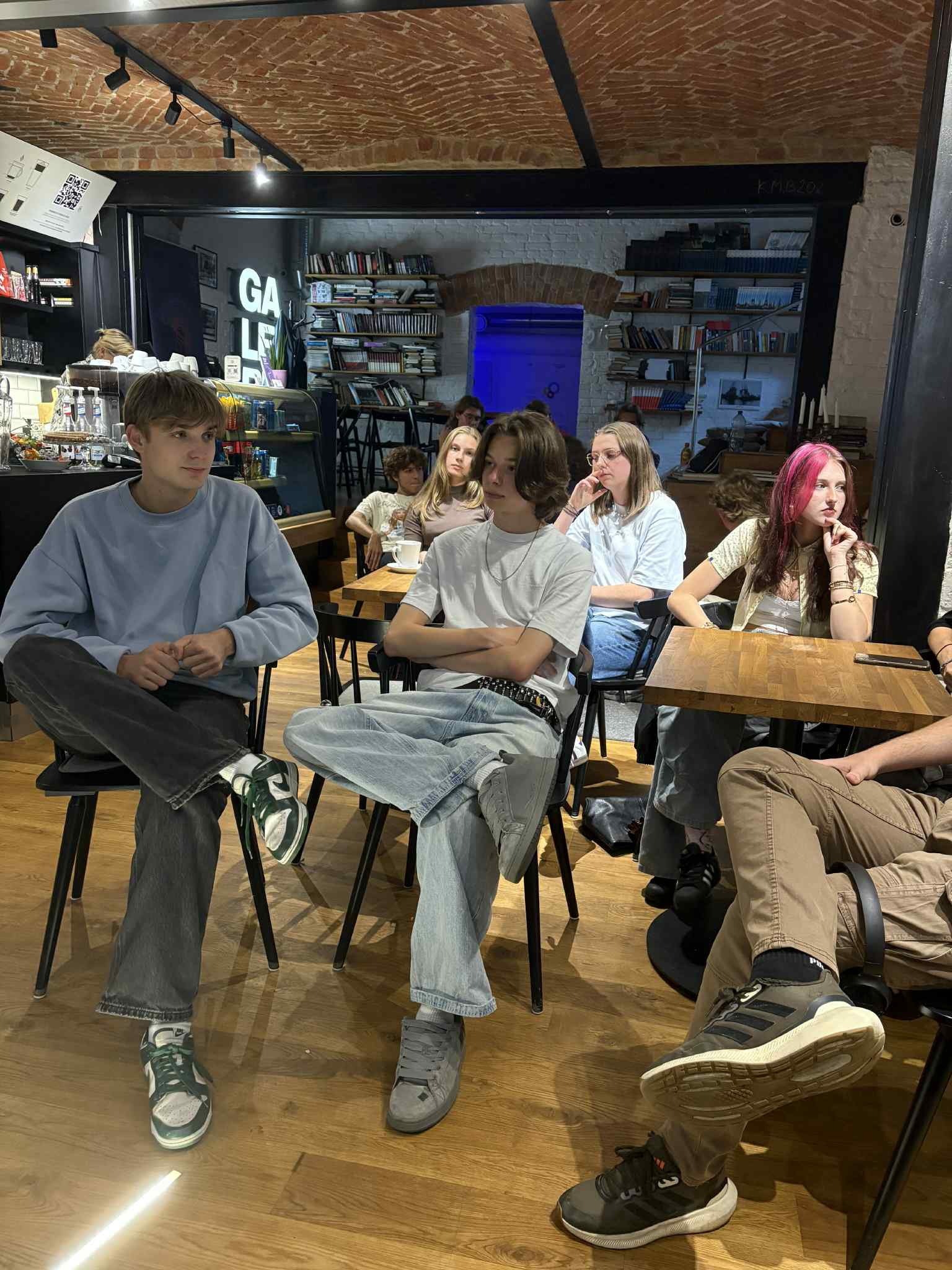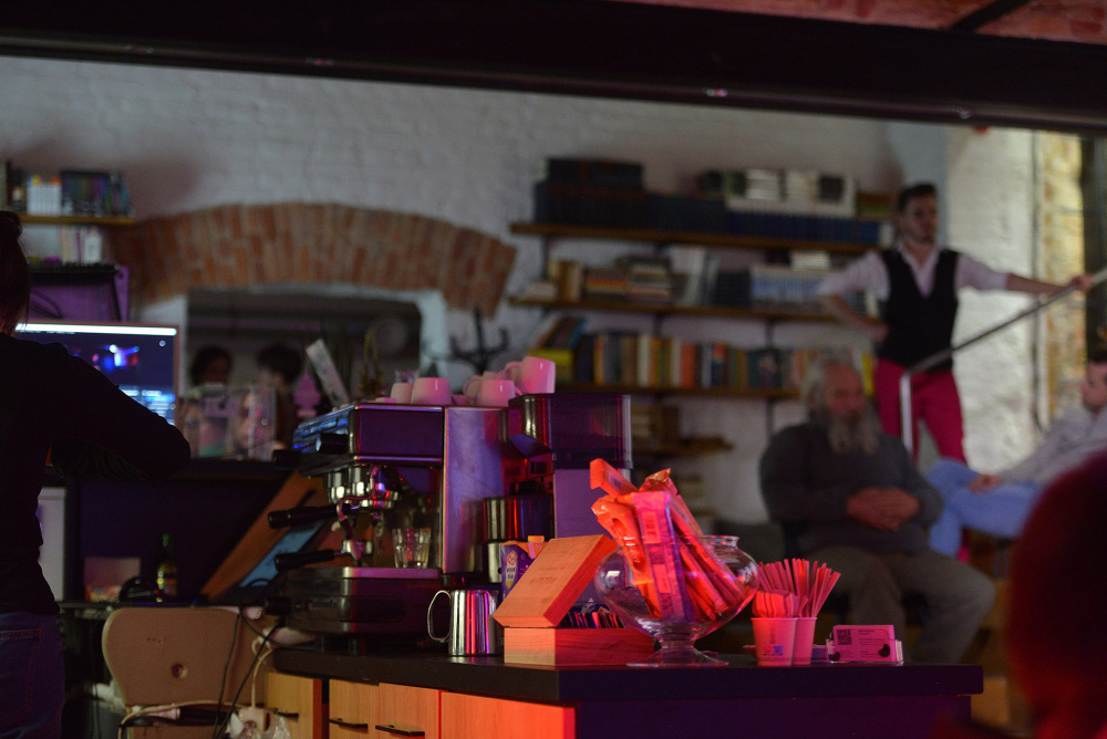 Nasza główna sala to miks kawiarnianego luzu z artystycznym zacięciem. Ceglane ściany, galeria nowoczesnej grafiki i pop-artu oraz kameralna scena tworzą przestrzeń idealną do:
